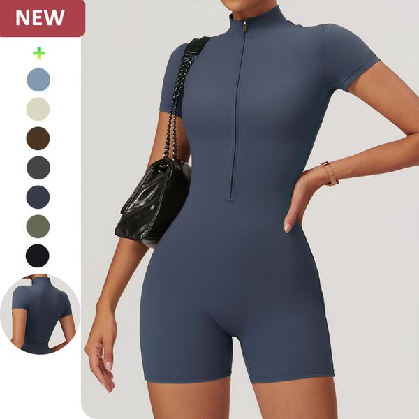 Custom logo Women Activewear Shorts Female Activewear Skinny Solid Jumpsuits Gym Yoga Bodysuits$13