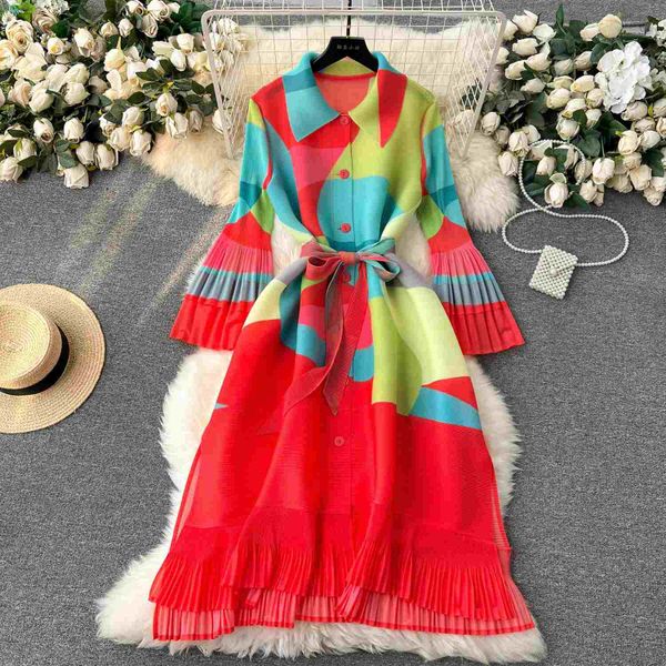 Dropshipping Ladies Long Sleeved Hot Selling Sexy Women Advanced Pleated Printed Women's Summer Loose Fit Dresses$17.6