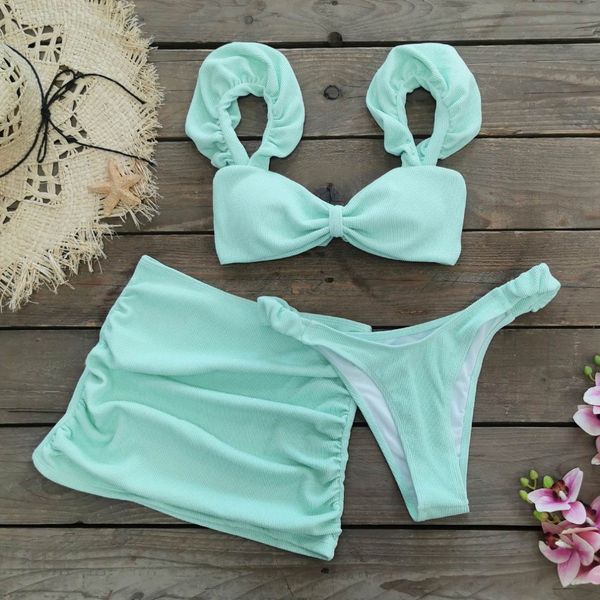 Dropshipping Women Swimwear Push up Swimsuit Bottom Print Brazilian Biquini Bathing Suit Swim Wear Beach 3PC Ruffe Bikini Set$8.18