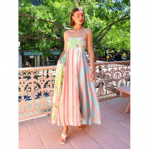 Dropshipping Printed Slip Dress Fashion Design Dress Custom logo Casual Pleated Long Skirt Factory Directly$9.05