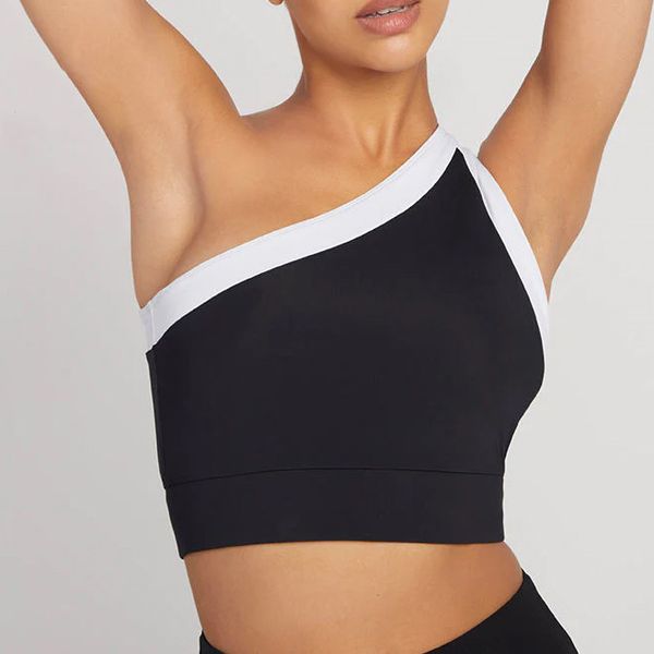 Womens One Shoulder Sports Bras Workout Yoga Bras Activewear Cute Medium Support Crop Top$8.5