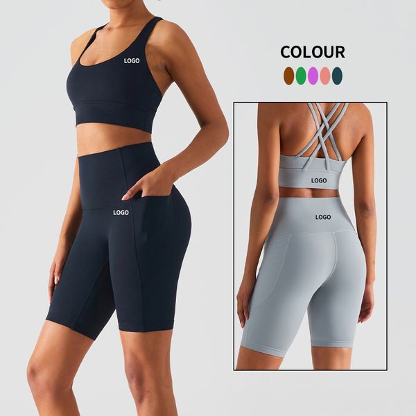 OEM Yoga Suit Children Athletic Wear Activewear Girls Gym Shorts Kids Fitness 2 Pieces Sports Bra Set Children's Yoga Wear Set$7.9