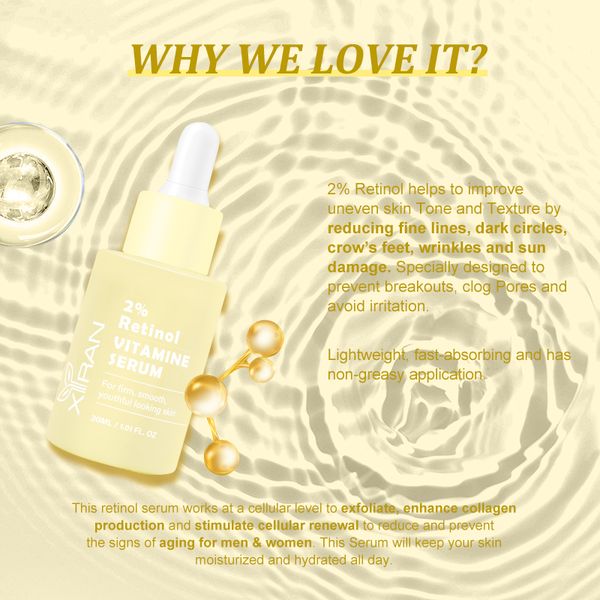 Private Label High-Dose Retinoid Face Serum Anti Wrinkles and Lines COQ10 Improves UV Damaged Skin Anti Aging Serum$1.6