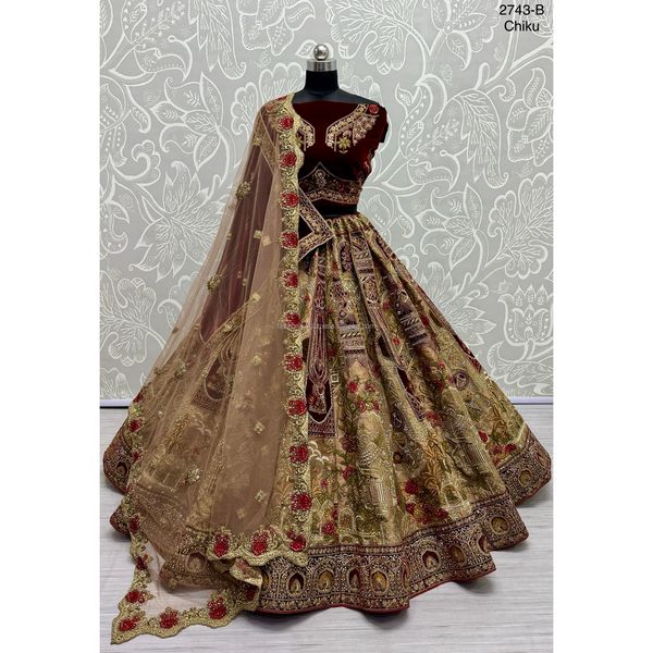 Indian Bridal Wear Velvet Collections for Bride With Zarkhan Work by Fabzone$50