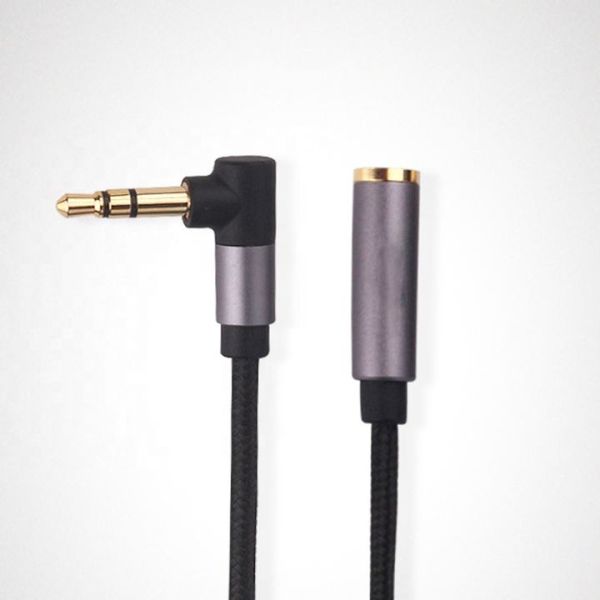 Factory Price 3.5mm 90 Degree Angle Male to Female Gold Plated Connector Cable Aux Cable Audio Lead 3.5mm Jack to Jack Stereo Cable$0.8