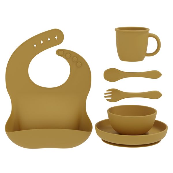 6pcs Food-Grade Drop Resistant and Temperature Resistant Non-Toxic Silicon Round Shape Plate Bowl Bib Cup Children Feeding Set$5.2