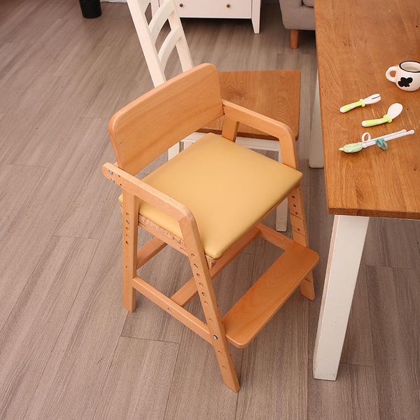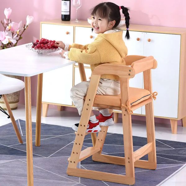 Foldable Wood Children's High Chair Portable Multi-functional Baby Dining Growth Adjustment High Chair$15.1