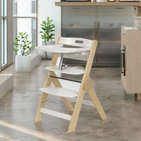 2023 New Baby Wooden High Chair with Table Plastic Tray Easy Adjustment$28