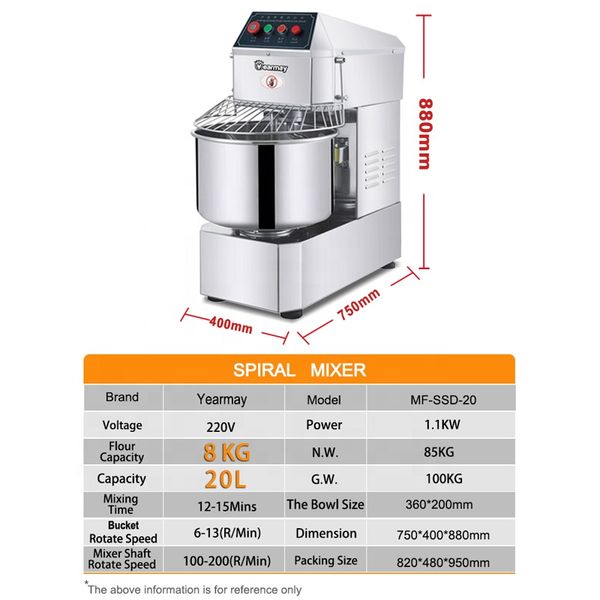 Hot Sale 20L 50L Heavy Duty Electric Bakery Cake Bread Dough Double Speed Spiral Mixer for Hotels Bakery Baking Food Factory$409