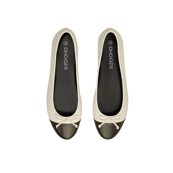 CHOOZII Factory Wholesale Custom Ladies Women Black and White Color Striped Stitching Comfortable Ballet Flats with Bowknot$17.99