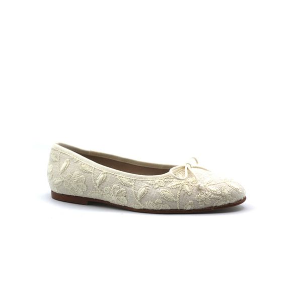 Choozii Ladies Pointed Floral White Fabric Upper Bow Lightweight Bow Ballet Flat Slip-On Shoes Spring Summer$18.99