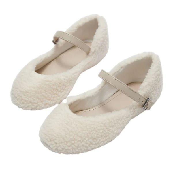 Choozii New Design Children Ballet Flats Kids Comfortable Warm Lambswool Fur Mary Jane Shoes for Girls$10.59