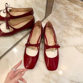 Wholesale women mary jane shoes size 43 red black bow strap dress sandals women's shoes ladies ballet flats shoes$17.9