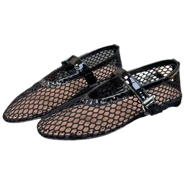 Women's Net Material Ballet Shoes Lightweight Hollow Mesh Ballerinas Custom Summer Flat Ladies' PU Insole Buckle Strap Flats$9.5