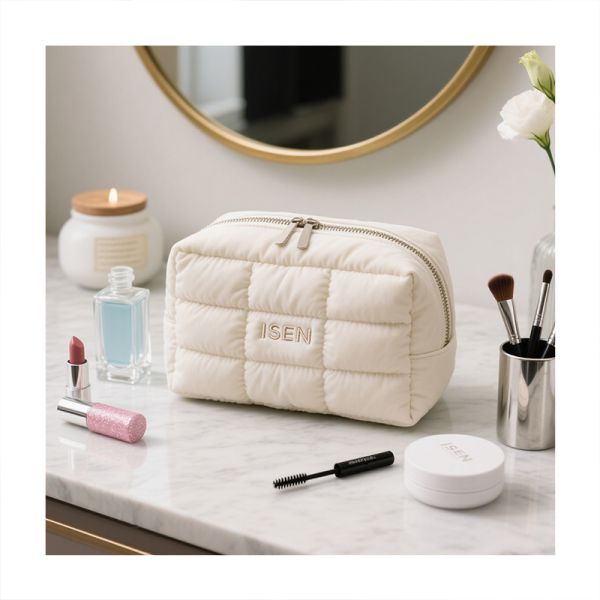 Trends Aesthetic Travel Beauty Designer Bag Custom Cotton Puffy Toiletry Makeup Pouch Bag Quilted Cosmetic Bag for Women$2.1