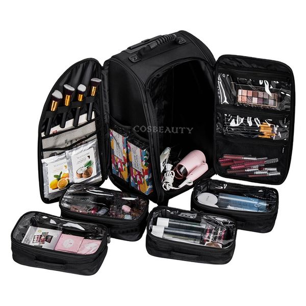 KONCAI Factory Professional Hair Stylist Rolling Beauty Case Hairdressing Storage Box Trolley Makeup Bag$38