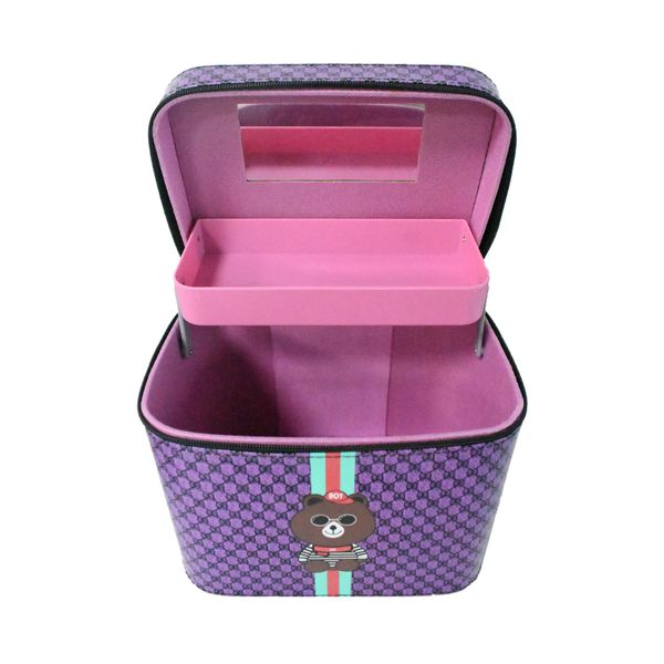 Factory Custom Printed High Quality Portable Makeup Bag With Mirror Professional Large Capacity Travel PU Leather Cosmetic Bag$7.06