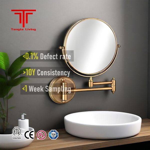 TETE 3x Magnification Retractable Folding Metal Framed Mirror Cosmetic Mirror In-Stock Double-Sided Bathroom Mirror for Hotel$9.24