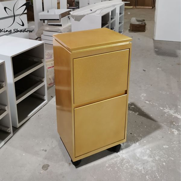 Luxury Gold Hair Salon Trolley Cart Portable Stainless Steel Beauty Salon Cabinets with Mirror Station Made From Wood$58