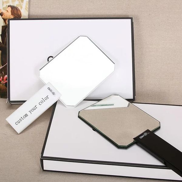Custom Your logo Large Hand Mirror Luxury Portable Beauty Salon Mirror Acrylic Framed Lash Makeup Mirror for Girls$3.55