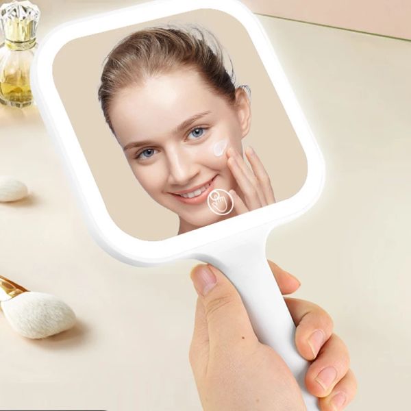 New Portable Hand Held LED Makeup Mirror Beauty Salon Touch Light Hand Mirror Recharging Girls Makeup Mirror$1.25