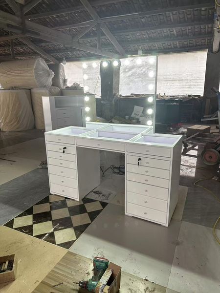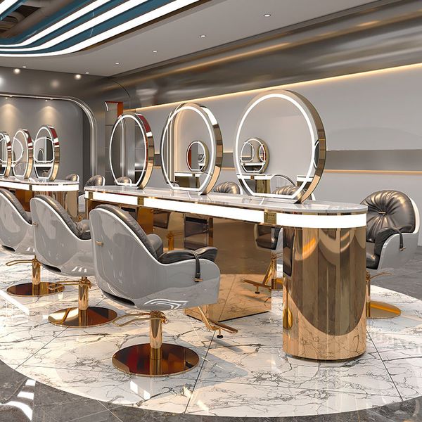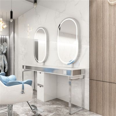 Luxury High Quality LED Mirror Hairdressing Styling Station Modern Design Beauty Salon Furniture Custom Shape$200