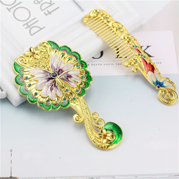 European Carry Vintage Hand Beauty Mirrors Makeup Mirror Hand Hold Cosmetic Mirror With Handle for Wedding Gifts$2.37