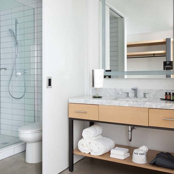 Modern Wood Panel Bedroom Set James Hotel Sonesta Lifestyle Hotel Guestroom Furniture-Bed & Furnishings$499