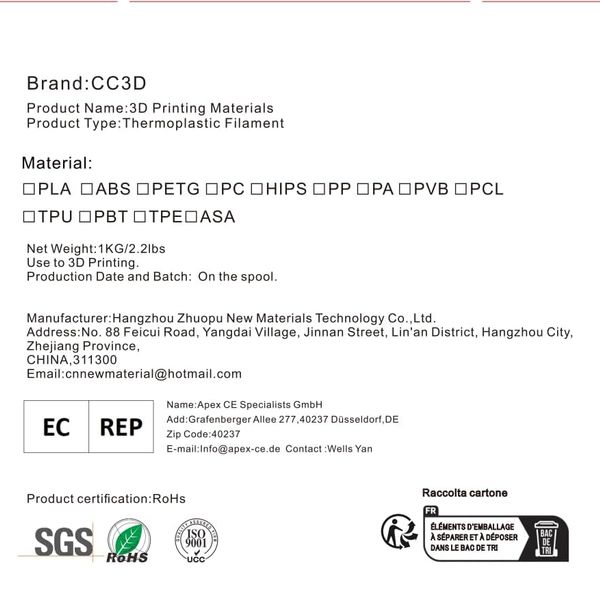 Hangzhou Zhuopu New Material Technology Co., Ltd. is a specialized manufacturer and trading company based in Hangzhou, China, dedicated to the research, development, and production of high-quality 3D printing consumables. Established in 2015, the company operates an 8,000-square-meter factory and a 2,000-square-meter warehouse, achieving an annual output of approximately 700,000 rolls. They maintain a robust quality management system with ISO 9001, ISO 14001, and RoHS certifications, ensuring consistent and durable products for a global market that includes North America and Europe.