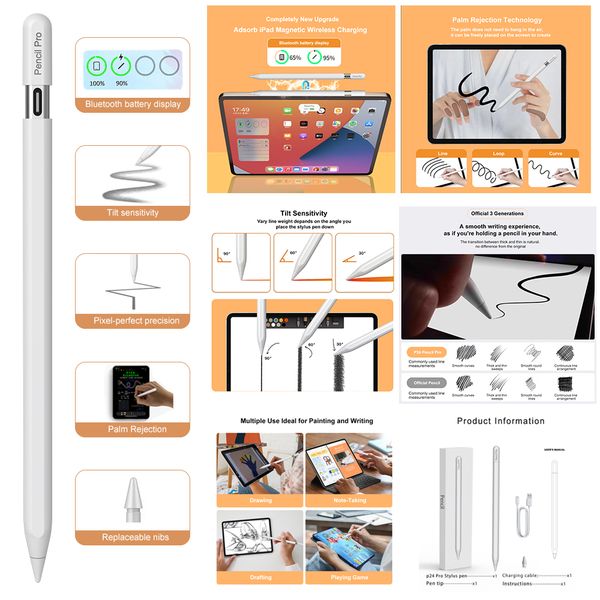 2024 New Pencil Stylus Pens Magnetic Charging Tilt Function for Apple Ipad Series Tablet Pen Active High Precision Pencil$8.3