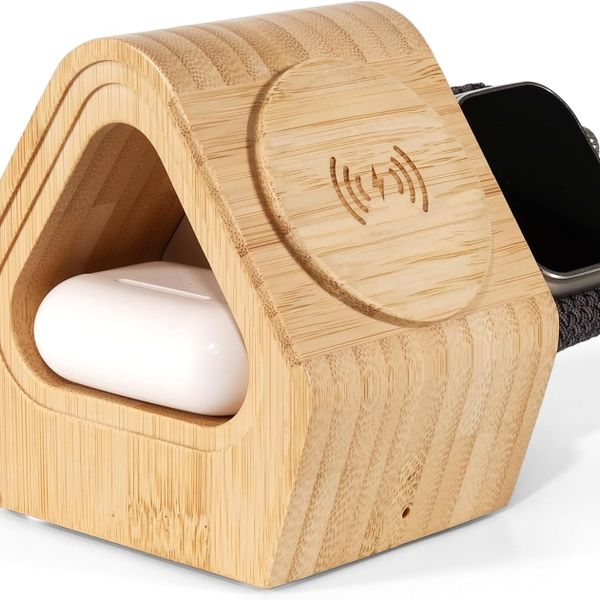 3 in 1 15W Magnetic Bamboo Wireless Charger Station Mobile Phone Charger for iphone & AirPods & Apple-Watch$11.99