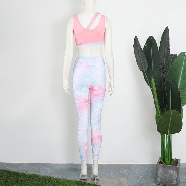 Women Gym Fitness Sets Factory Fashion Sports Bra Tie Dye Leggings 2pcs Athletic Wear Set$12.39