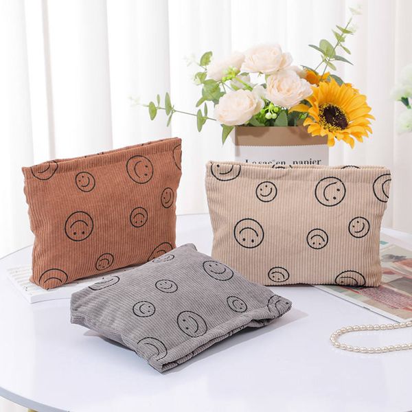 Vintage for Smiley Storage Wash Hand Bag Zipper Closure Corduroy Polo Dot Cosmetic Case Fashionable Geometric Mobile Phone$0.38
