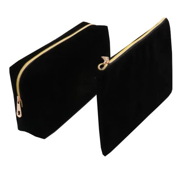 Custom Black Suede Velvet Pouch Embroidery Luxury Fashion Beauty Makeup Bag Professional Cosmetic Travel Bag Makeup Storage$1.58