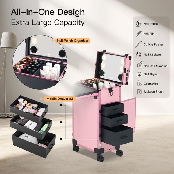 Stylish Portable Travel Makeup Organizer with Lockable Drawer$12