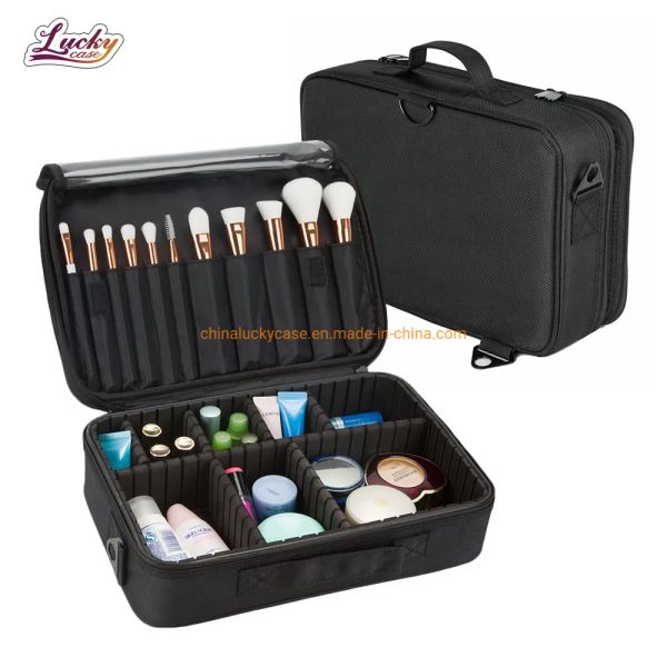 Stylish Black Large Capacity Makeup Bag with Custom Dividers$4