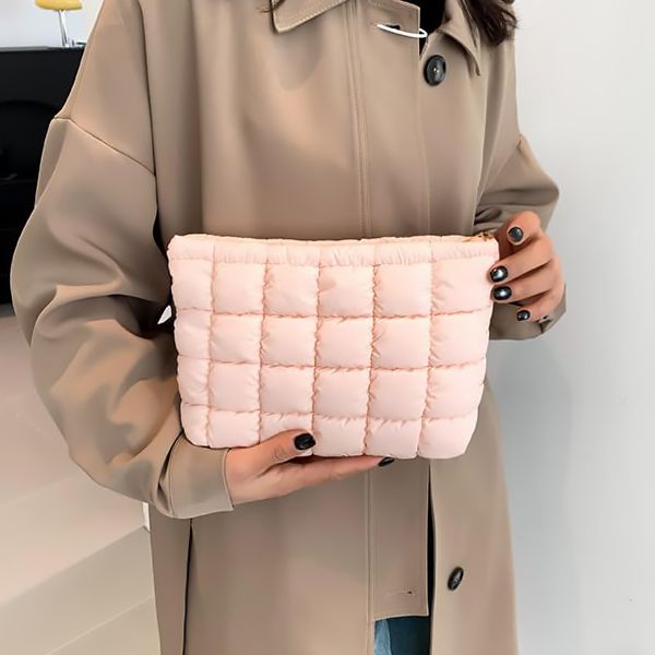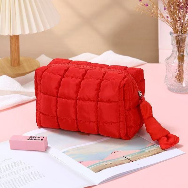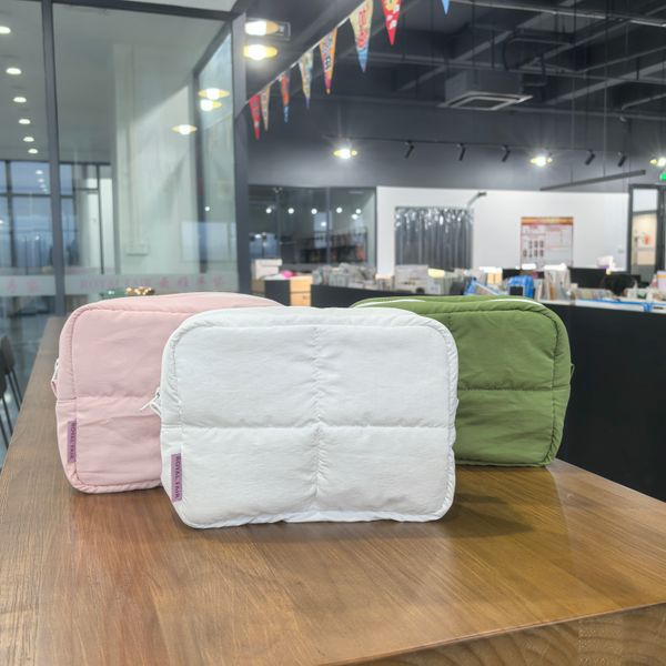 Stylish Fashionable Puffy Makeup Bag High Quality Nylon Material Zipper Closure with Embroidered Letter Pattern$1.5