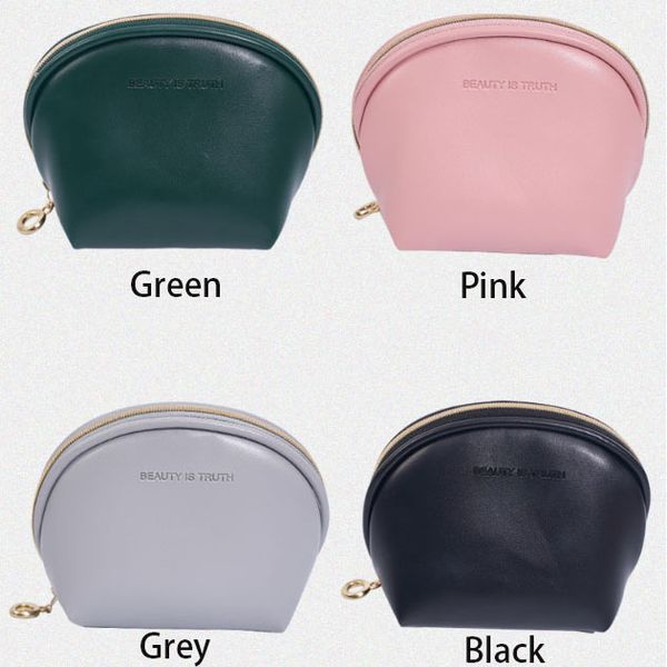 Design Beauty Girls Fashion Cosmetic Zippered Pouch Embossed Logo PU Half Moon Bag Silver Makeup Pouch Bag Wholesale$1.58