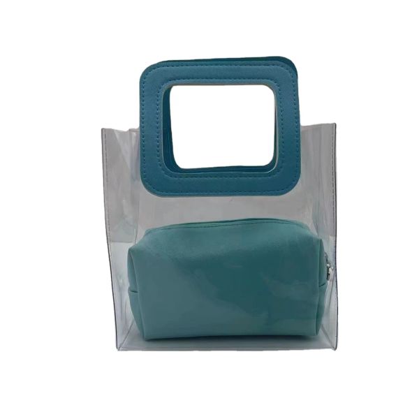 Stylish Eco Vegan PU Leather Women's 2-in-1 Handbag Set Clear Jelly Clutch and Transparent Shoulder Tote Summer Fashion Bag$2.05