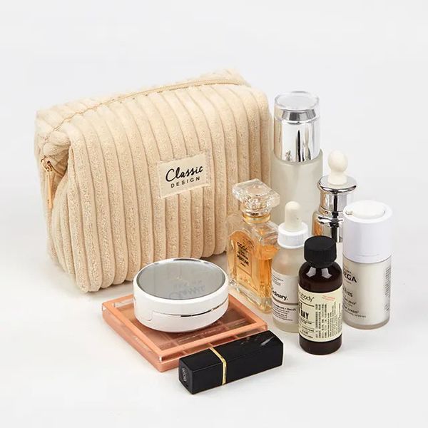 Custom Makeup Bag Multi-functional Portable Beauty Products Storage Bag Corduroy Material Simple Toiletry Bag$1.4