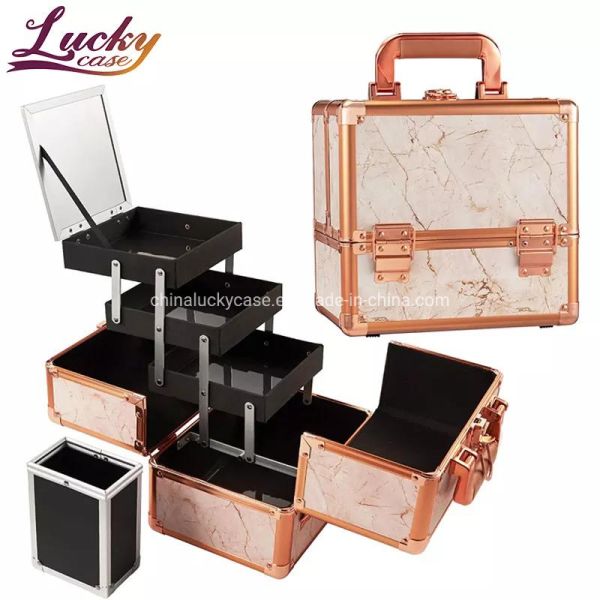 Stylish Portable Aluminum Makeup Organizer with Lockable Compartments$8