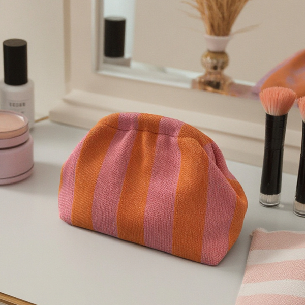 Royal Fair Luxury Custom Fashion Makeup Bag Soft Knitted Fabric Striped Cosmetic Pouch OEM Solid Color Portable Storage Bag$2.21