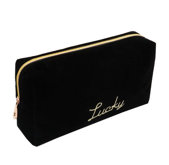Ladies Fashion Cosmetic Bag with Custom Velvet Golden Zipper Personalized Logo Pouch for Makeup Beautiful Letter Pattern$1