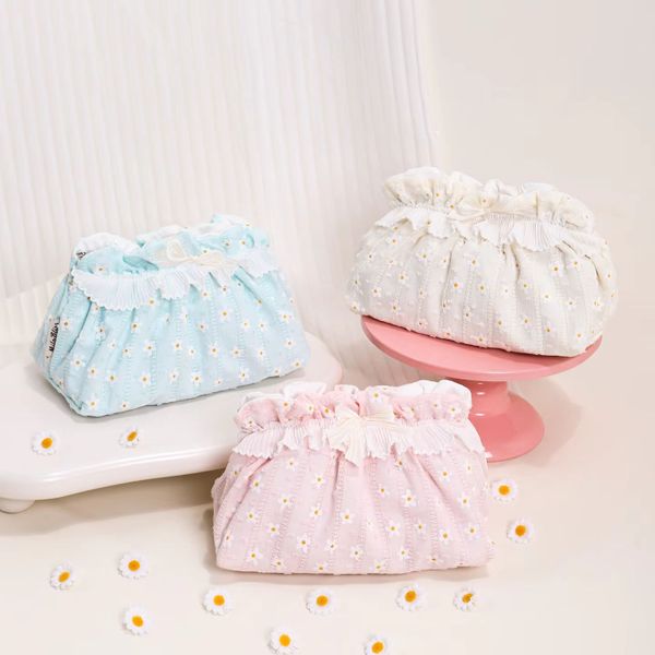 Summer Fashion Large Capacity Cosmetic Case Open Exquisite Handmade Small Flower Lace Clouds Makeup Bag Portable Stylish$2