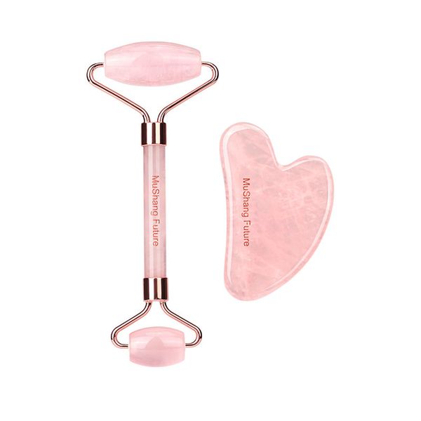 Wholesale Rose Quartz Gua Sha Jade Roller Set Facial Massager Beauty Roller Guasha Massage Tool Skin Care Product$3.39