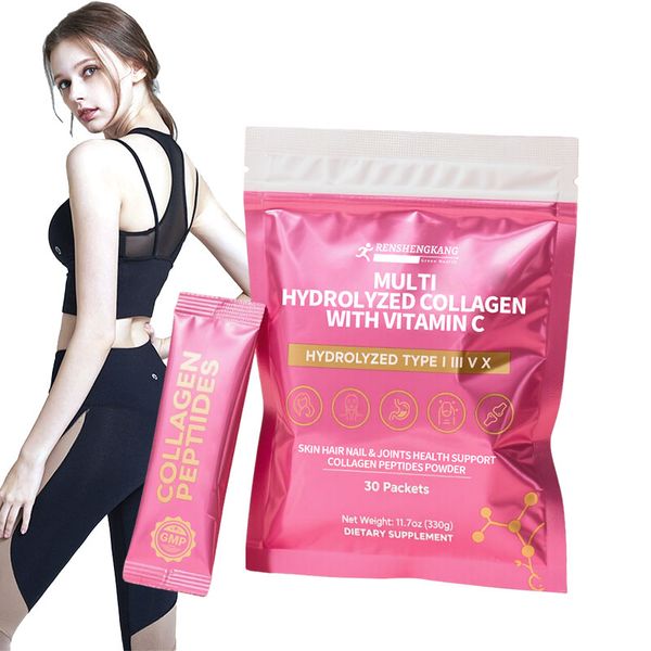 OEM ODM Multi-Hydrolyzed Collagen Peptides Powder Vitamin C Infused Supports Skin Nail Joints Health Private Beauty Product$3.8