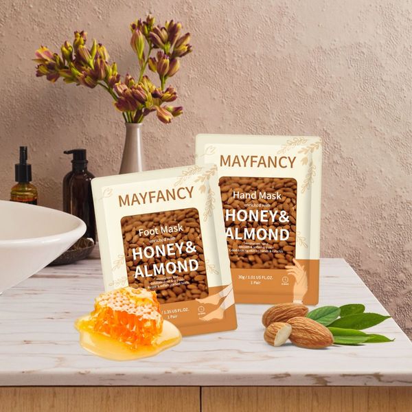 MAYFANCY Brand Your LOGO Plant Sheet Exfoliating Honey & Almond Hand Mask for Women Beauty Products$0.57