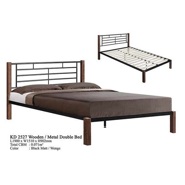 Modern Design Double Bed Frame Queen Bed Frame Bedroom Furniture Sets in Malaysia-Domica KD-2526 Steel Wooden Home Furniture$57