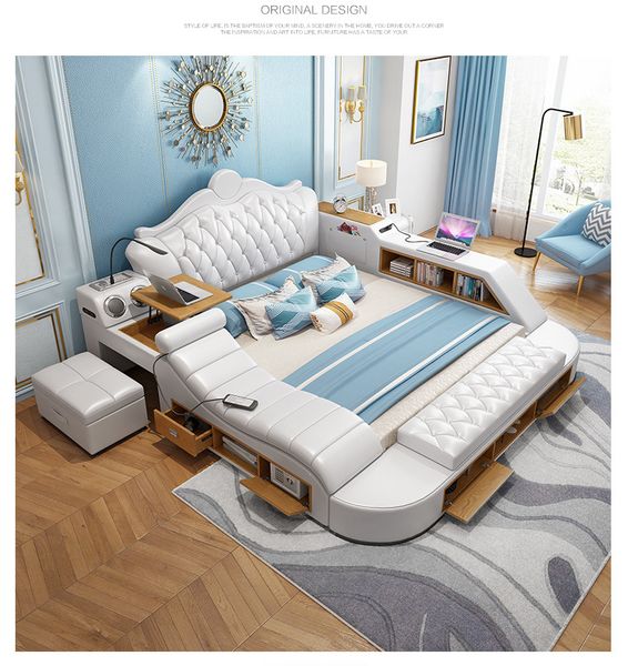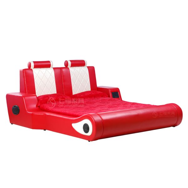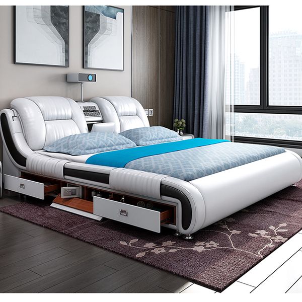Creative with Bluetooth Speaker Bed Bedroom Double Leather Bed Italian Light Luxury Multi-Functional Bed$750