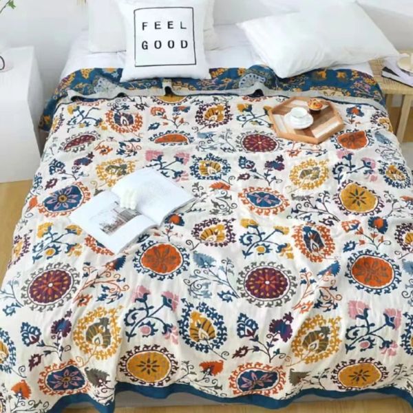 Bulk Order Indigo Kantha Quilt Handmade Reversible Bohemian Patchwork Blanket for Hotel$3